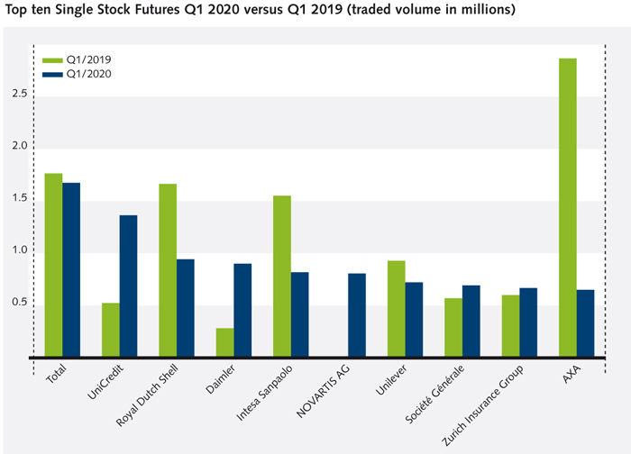 The first quarter of 2020 was undoubtedly a unique market environment. We didn’t just have to deal with the particularly high volatility but also the other fall-out caused by the COVID-19 pandemic. The index and single stock derivatives markets experienced a situation of uncertainty based on postponed AGM’s, the respective dividend payments, and also potential reductions of announced dividends. These challenging market conditions created some additional difficulties for all market participants, especially liquidity providers. We’d like to express our gratitude to our on-screen and off-book liquidity providers and highlight their exceptional performance. Thanks to them, we saw orderly and functioning markets, able to absorb extraordinarily high volumes, despite difficult operational circumstances such as the splitting of teams and work-from-home solutions.